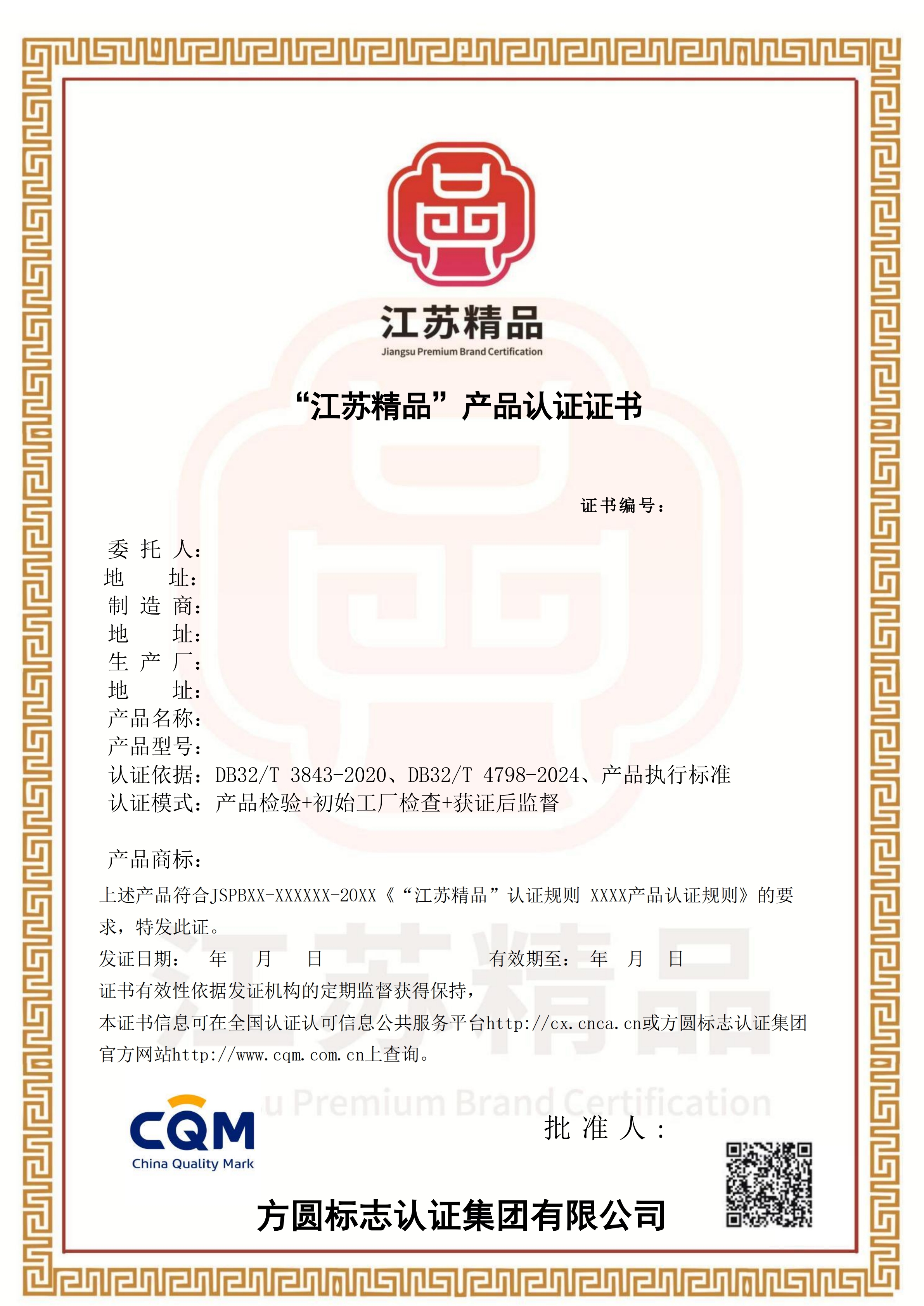 2. “江蘇精品”認證證書: