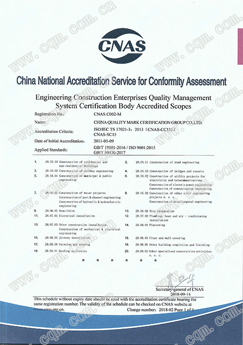 質量管理體系認證機構認可證書