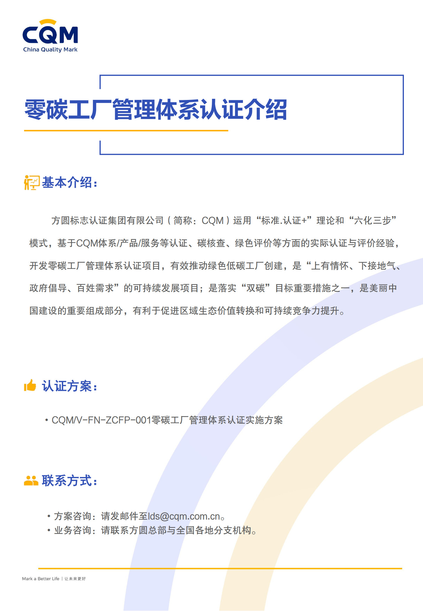 上述認證規則歸方圓標志認證集團有限公司所有,方圓標志認證集團有限公司對其擁有最終解釋權。任何組織及個人未經方圓標志認證集團有限公司許可,不得以任何形式全部或部分使用(法律要求除外)認證相關信息。如需獲取相關實施規則請與以下聯系方式獲取: