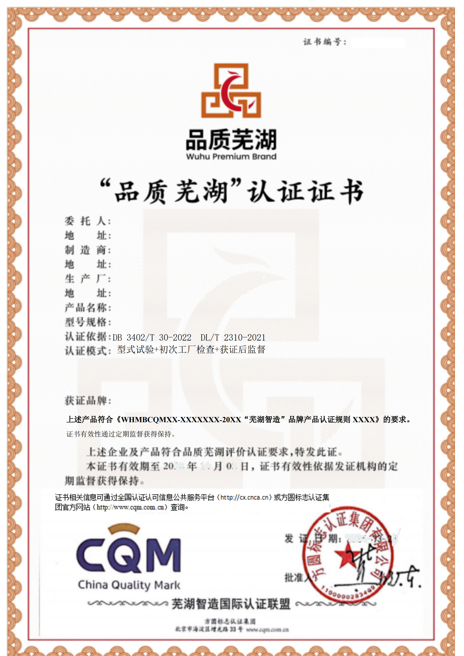 認(rèn)證標(biāo)志的基本圖案由中文“ 品質(zhì)蕪湖 ”字樣 、英文“Wuhu Premium Brand ”字樣和“ 品 ”字、“鳩鳥 ”圖案組成。圖案式樣和 標(biāo)準(zhǔn)色共分為三種。
