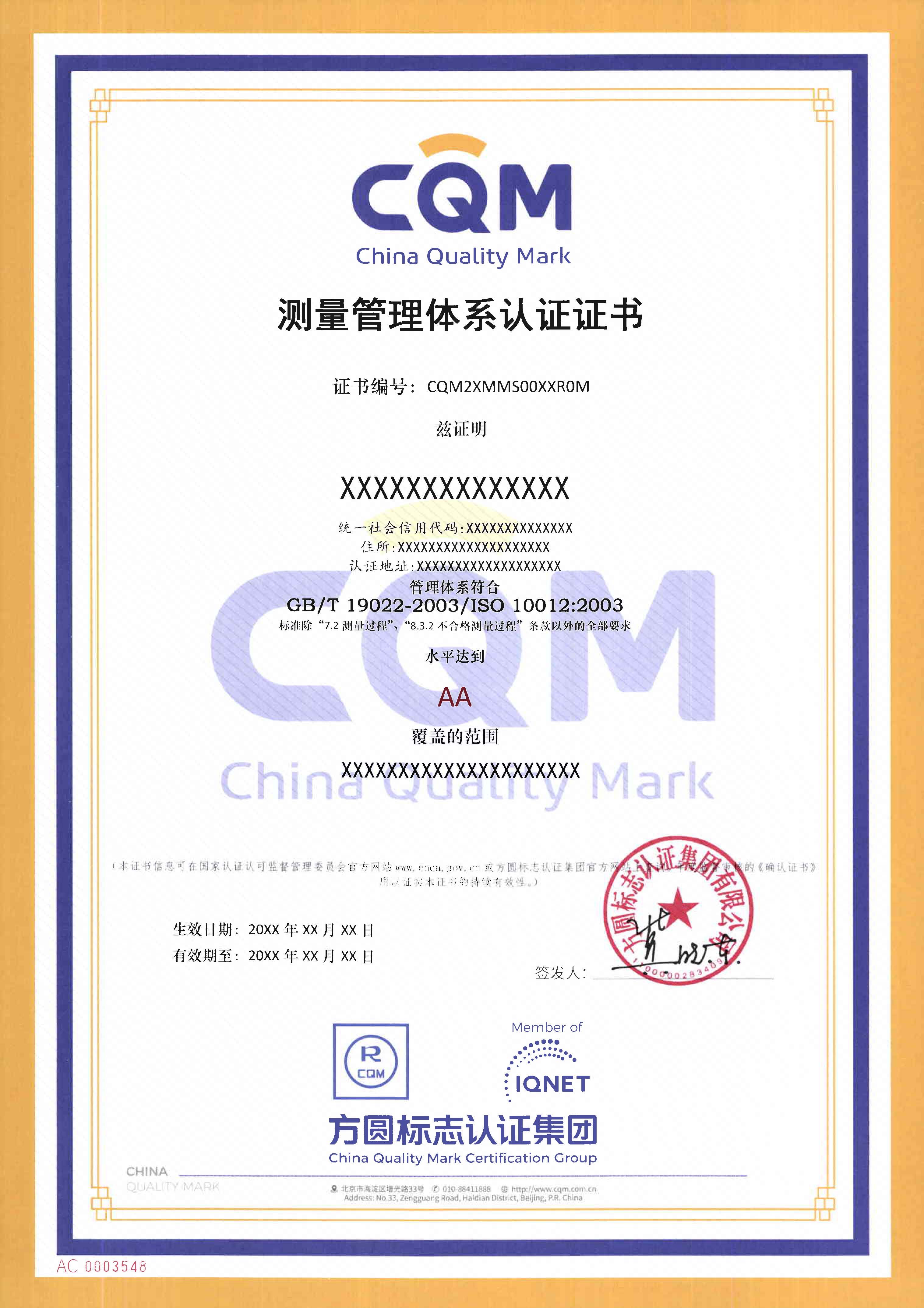 地址:北京市海淀區增光路33號 郵編:100048 總機:010-88411888 質量聯絡人:010-68708523 版權所有:方圓標志認證集團有限公司 Copyright(©)www.cqm.cn|fjslyhb.com All Rights Reserved 京ICP備13011523號-1 京公網安備11010802045953號