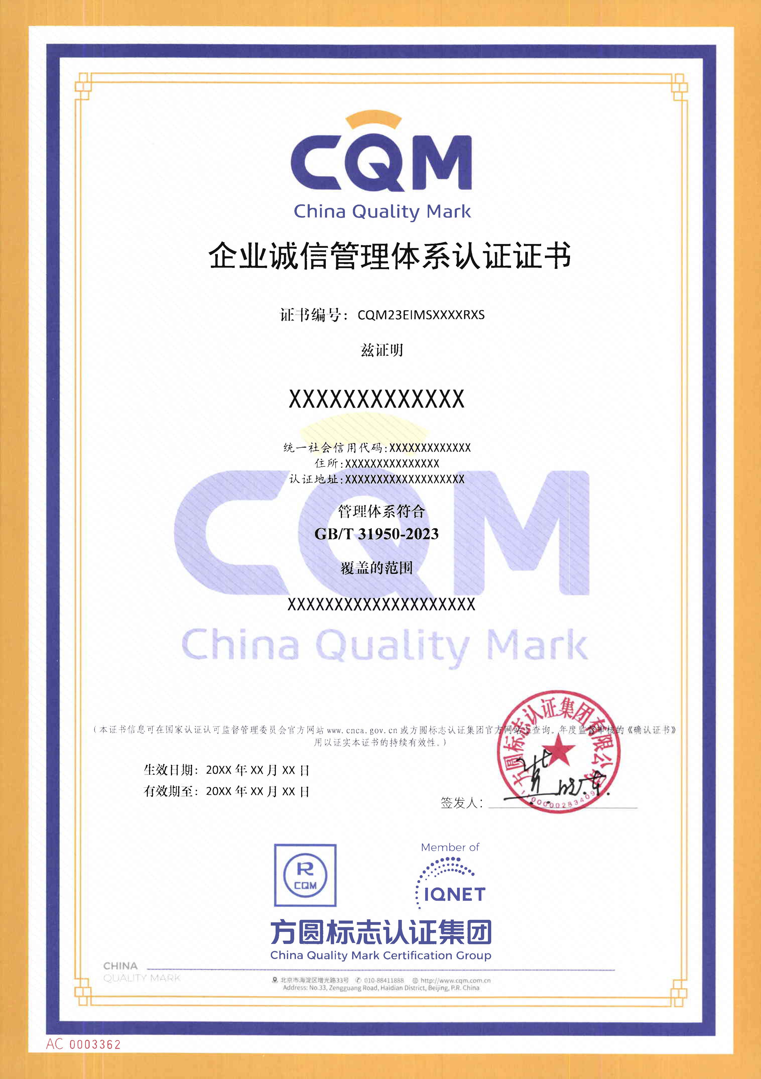 地址:北京市海淀區(qū)增光路33號 郵編:100048 總機(jī):010-88411888 質(zhì)量聯(lián)絡(luò)人:010-68708523 版權(quán)所有:方圓標(biāo)志認(rèn)證集團(tuán)有限公司 Copyright(©)www.cqm.cn|fjslyhb.com All Rights Reserved 京ICP備13011523號-1 京公網(wǎng)安備11010802045953號